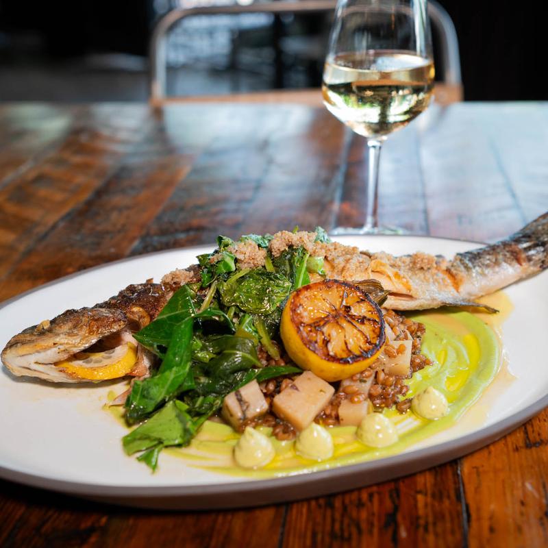 Horseradish Creme Fraiche, Dill, Grapefruit, Sunchoke Chips, Trout Roe