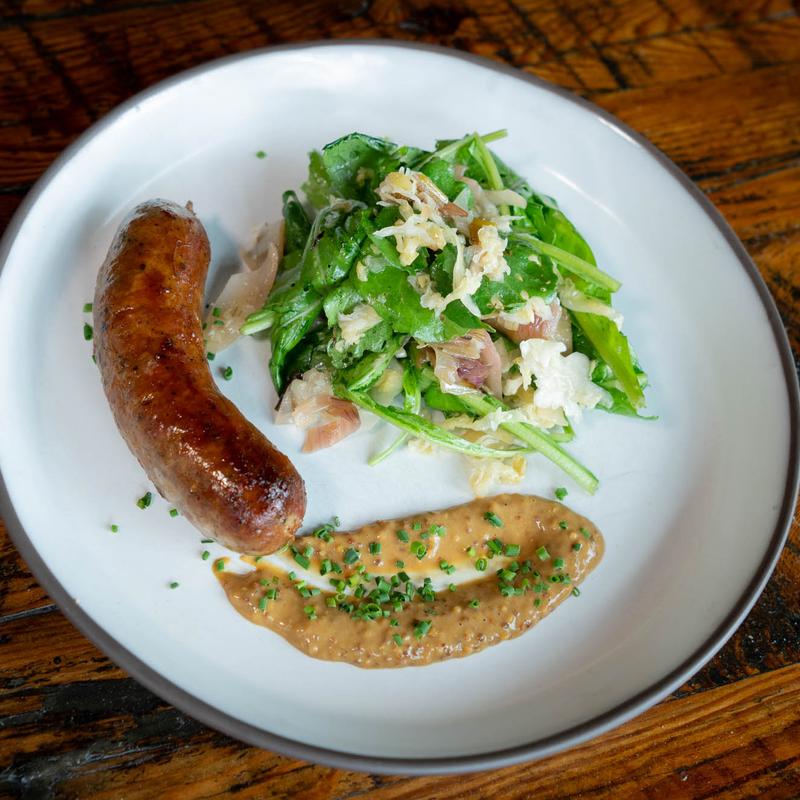 House sausage, duck pastrami, duo of local cheeses, pickled vegetables, mustard, grilled levain
